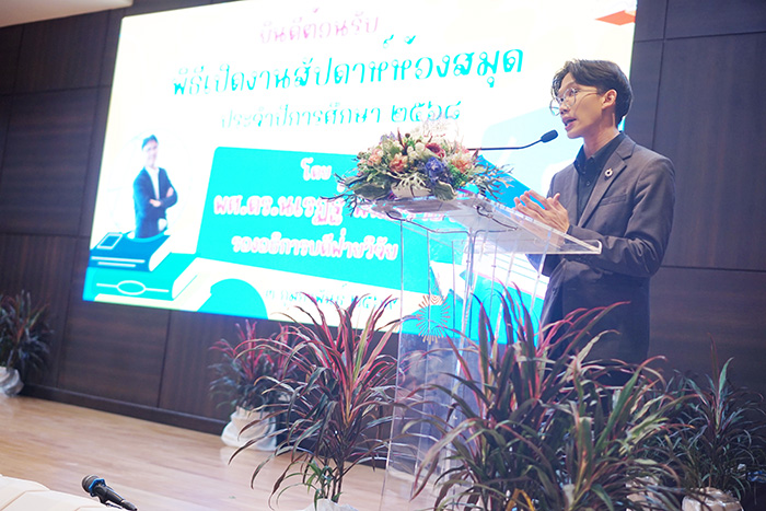 พิธีเปิดงานสัปดาห์ห้องสมุด ประจำปีการศึกษา 2568 ได้รับเกียรติจากผู้ช่วยศาสตราจารย์ ดร.นเรฏฐ์ พันธราธร รองอธิการบดีฝ่ายวิจัย