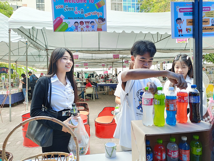 นักศึกษา บุคลากร และนักเรียน เข้าร่วมกิจกรรมเกมทายคำกับห้องสมุดและเกมเรียงน้ำสีมหาสนุก ทั้งลุ้น ทั้งฮา ทั้งได้ความรู้